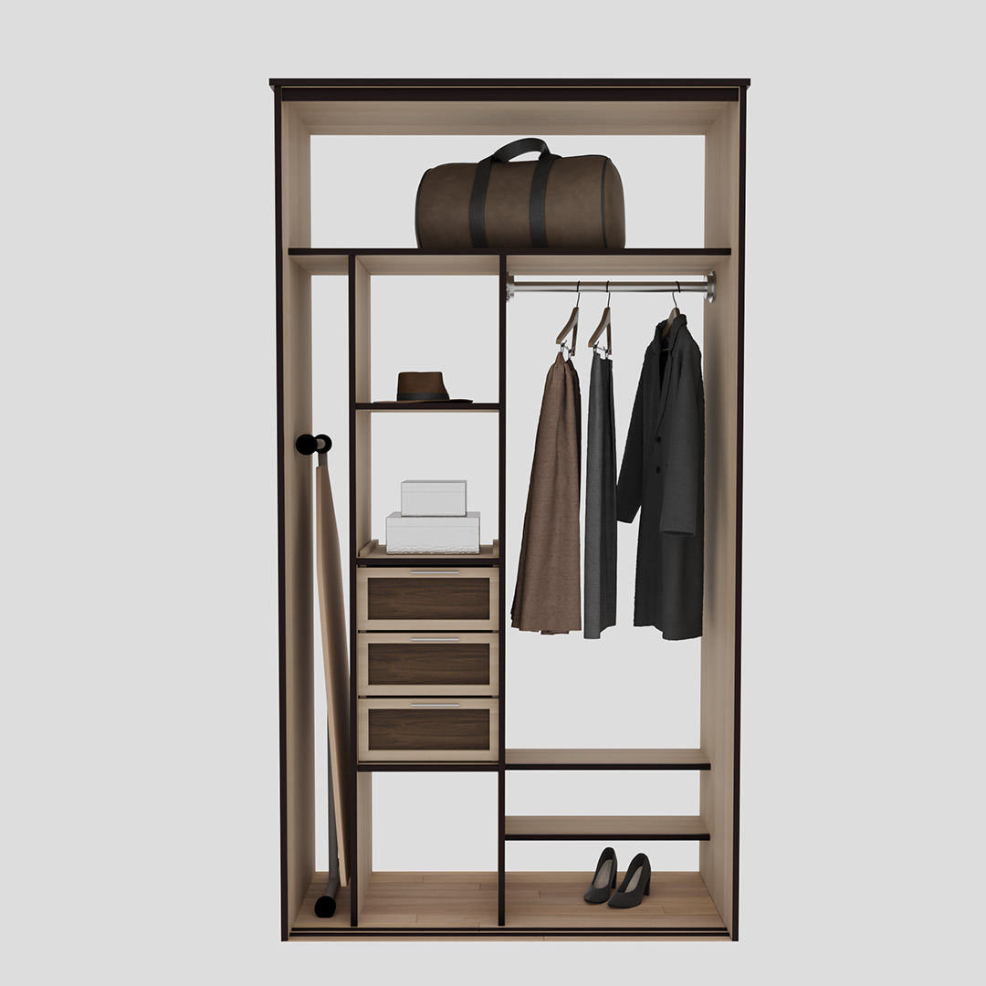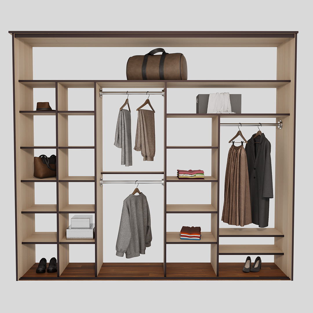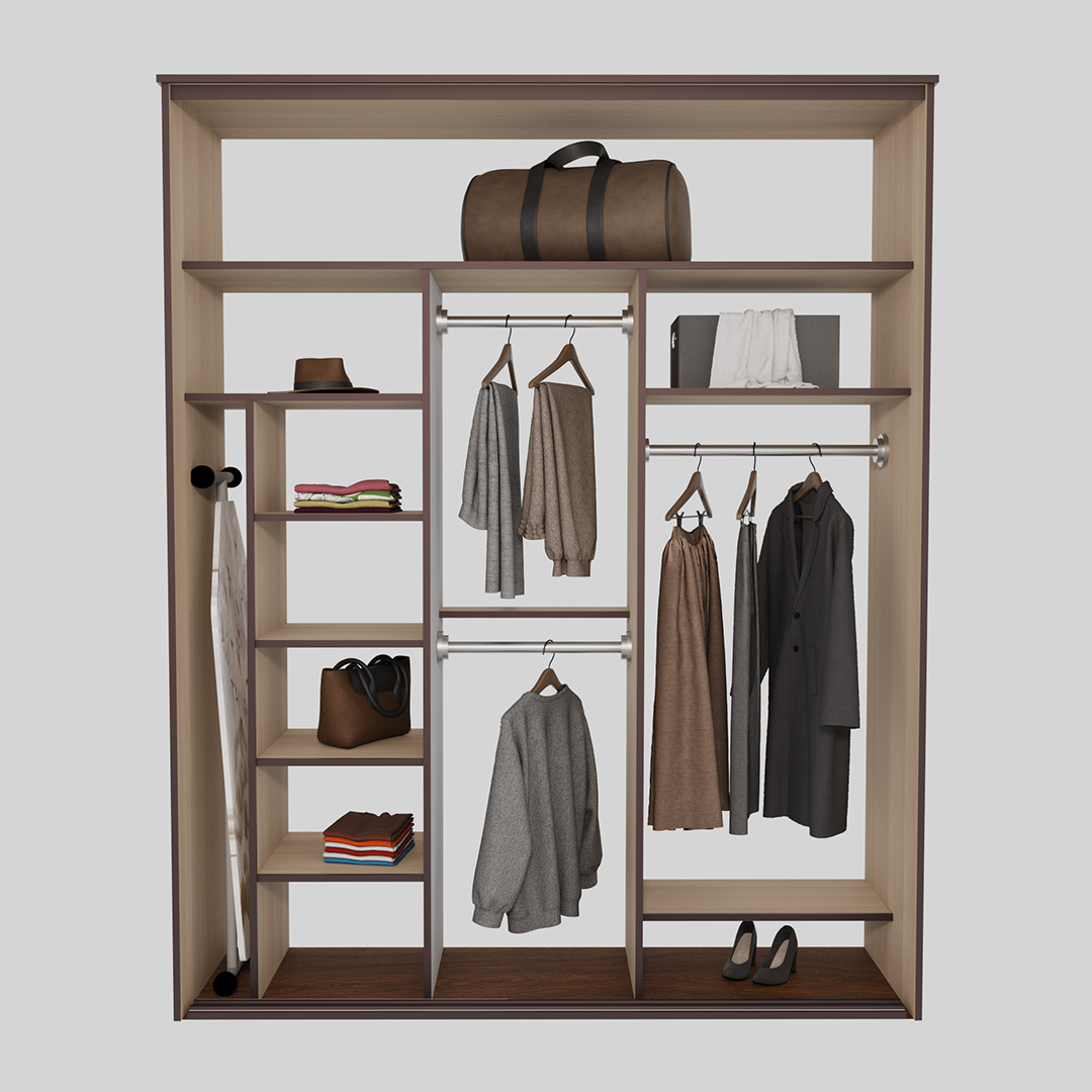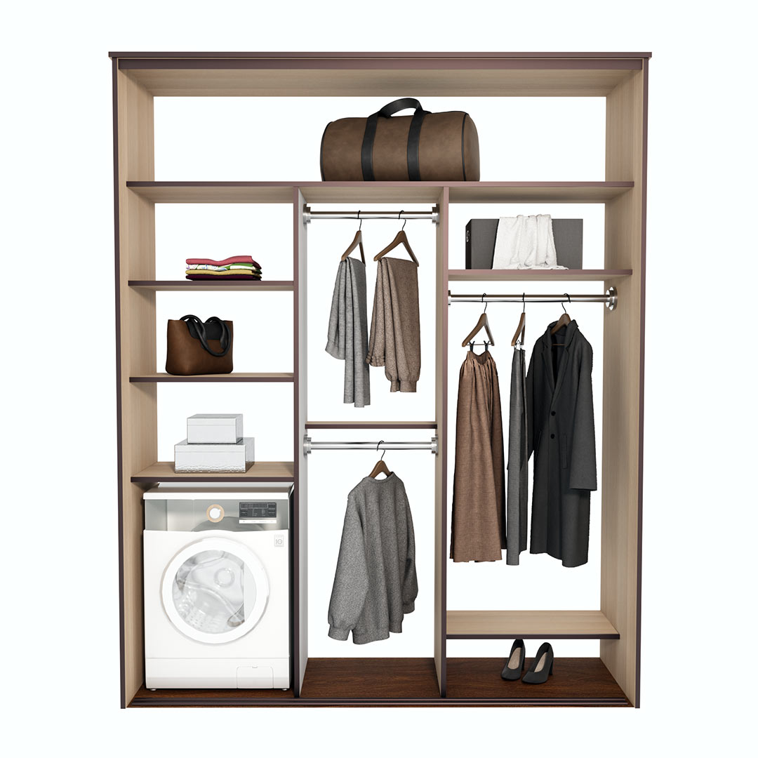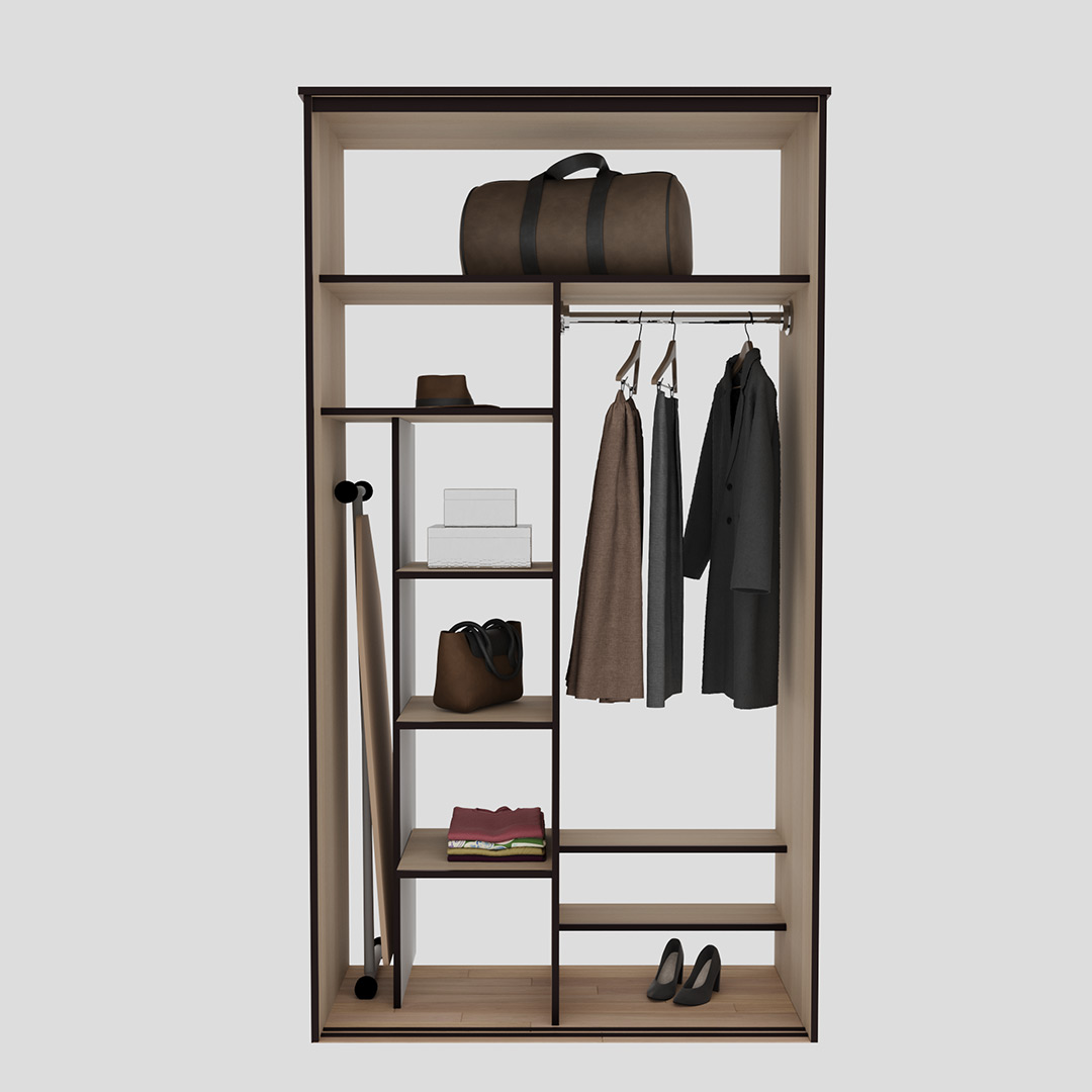 В зоне для вешалок располагаются мнущаяся одежда. Вы можете разделить эту зону на несколько частей — для короткой и длинной одежды.