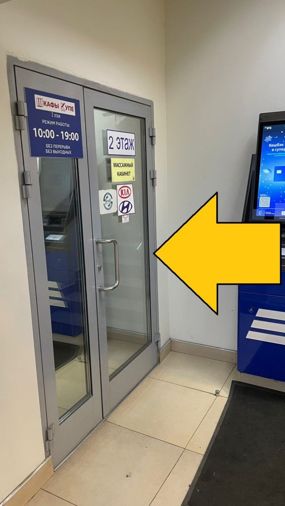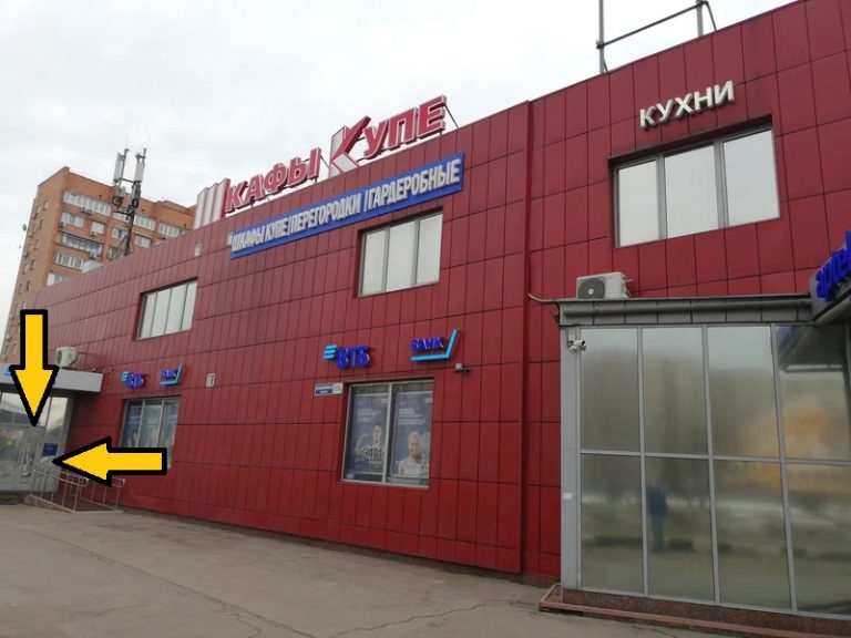 Для входа в здание нужно воспользоваться крыльцом с левой стороны здания и стеклянными дверями.