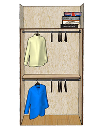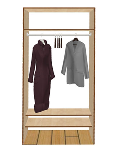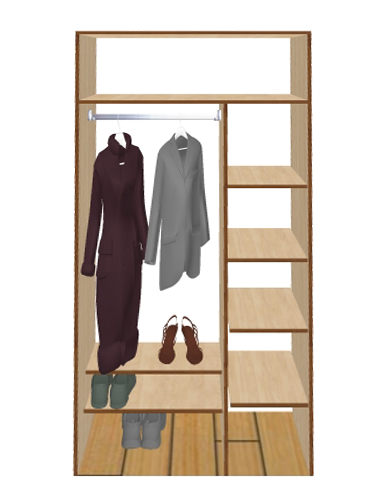 Так, например, три штанги можно дополнить семью уровнями полок, вспомогательными крючками и специальным отсеком для обуви.